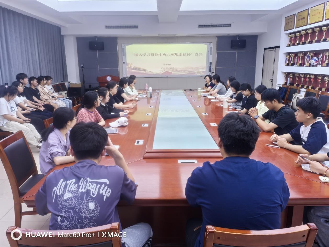 5月20日,beat365唯一官方网站第五党支部书记刘凝在生物楼N306为入党积极分子讲授“深入贯彻中央八项规定精神学习教育”主题党课。刘凝围绕习近平总书记关于加强党的作风建设的重要论述,为学生阐释了中央八项规定及其实施细则精神的实质内涵。她向与会学生提出三点要求,一是要坚定理想信念,强化理论学习,以党的创新理论武装头脑、指导实践;二是要树立优良作风,以本次学习教育为契机,学深悟透习近平总书记关于加强党的作风建设的重要论述,树牢纪律观念,提升个人修养;三是要发挥模范带头作用,时刻以党员的标准严格要求自己,践行奉献精神,积极服务学院高质量发展。