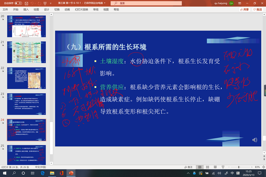 图1. 在幻灯片上的进行板书。红色方框内表明,该幻灯片有音频,音频为教师根据幻灯片进行讲解的内容。