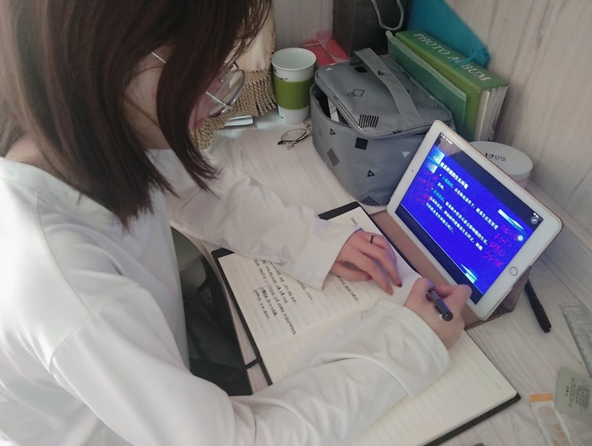 通过学生发回来的网络上课照片及笔记,可以看出学生对学习态度很端正(图6),上课非常认真,仔细记录笔记(图7)等,与正常课堂教学没有差异。