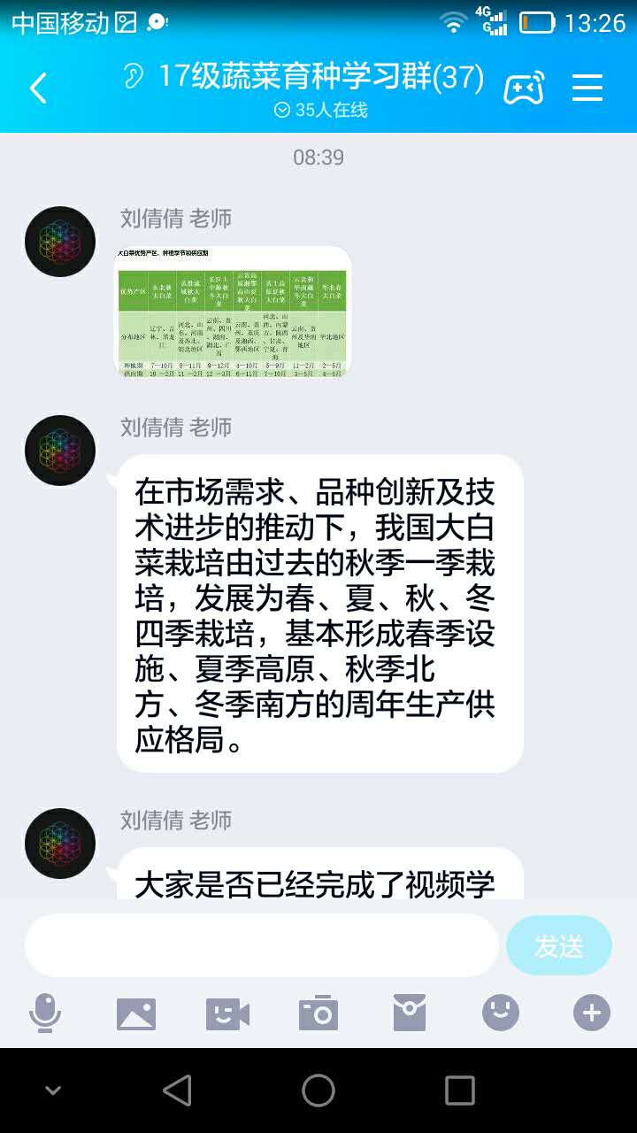 接到学生延迟返校,准备线上教学的通知后,我们两位教师立即搜索各种教学资源,筛选出西北农林科技大学《蔬菜育种学》的视频,再加上自己录制的部分教学视频作为基本教学依据,编制授课计划和教案,准备教学讲稿和其他比较丰富的教学材料,从教学纲要和内容上保证授课质量。提前两个周在学习通上将课程建设做好,同时建立和调试好QQ群。