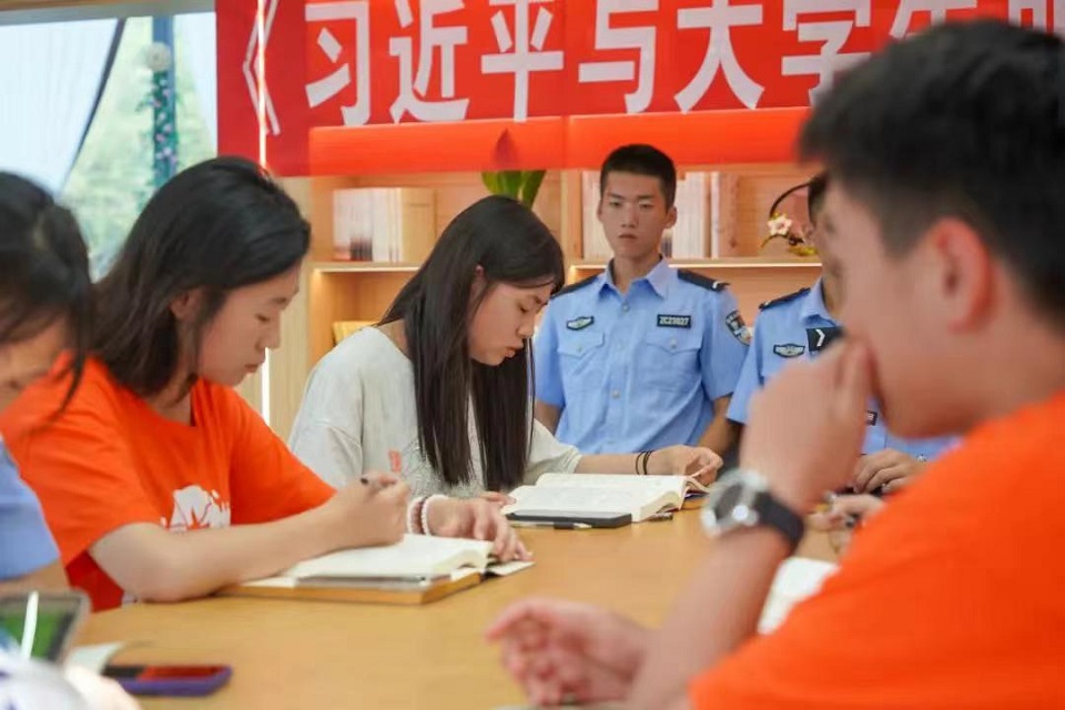 在阿拉山口出入境边防检查站的“曦林书屋”中,联合实践团的成员们精心组织了“为中国式现代化挺膺担当——青春年少好读书”《习近平与大学生朋友们》(第二卷)读书分享会。来自各高校的学生代表依次根据自身的实际情况,深入而真挚地分享了个人阅读后的所思所感。