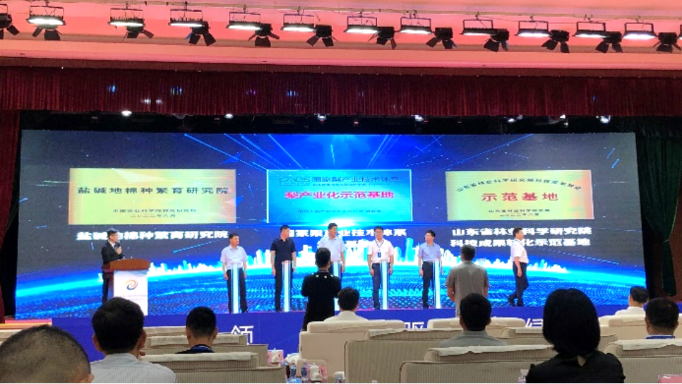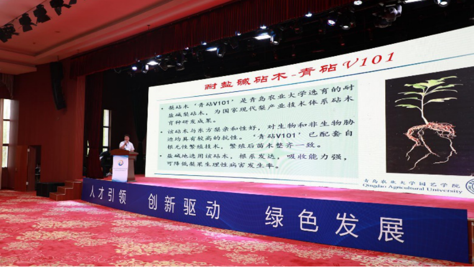 为深入贯彻落实习近平总书记重要指示要求,围绕国家所需、发挥垦利所长,聚力抓好盐碱地综合利用和生态农业创新发展,2022年6月29日,由中共东营市委组织部、东营市科技局、东营市农业农村局、东营市水务局共同参与指导,中共垦利区委、垦利区人民政府举办了“黄河三角洲盐碱地综合利用暨生态农业创新发展论坛”。国家梨产业技术体系砧木评价与改良岗位科学家、beat365唯一官方网站李鼎立教授及团队成员刘建龙副教授参加了会议。会议中,李鼎立教授为国家现代梨产业技术体系产业示范园进行揭牌,并详细推介了国家梨产业技术体系砧木评价与改良岗位成果,包括梨耐盐碱砧木、品种以及配套栽培技术。同时为更好服务国家黄河流域生态保护和高质量发展战略,李鼎立教授和垦利区林业发展服务中心、农业农村局、东营黄河三角洲果树产业技术研究院、山东省林业龙头企业东营市泰欣农林发展有限公司、东营三冠园林有限责任公司围绕耐盐碱梨生态高质量发展,在梨砧木育种、梨生态高质量栽培方面进行了交流研讨,共同谋划展开深入合作。