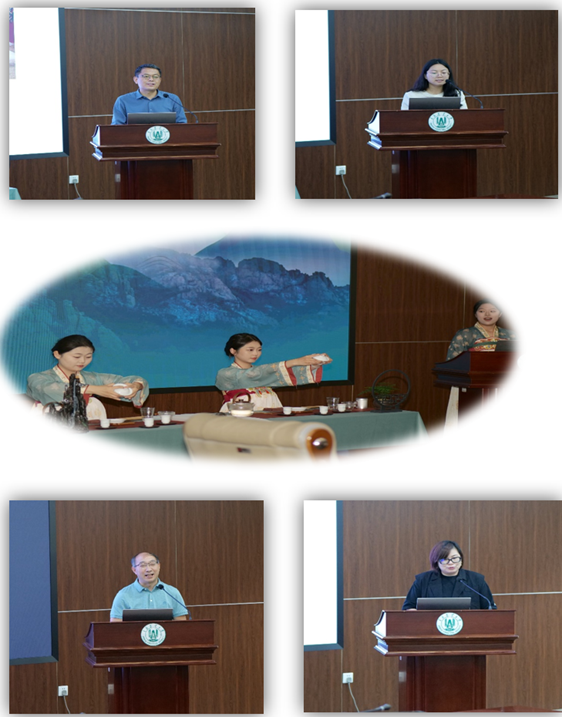 研讨会上,张新富、曲凤凤、倪德江、陈萍分别作了题为《崂山凤羽红茶研发与产业化》《崂山凤羽红茶茶艺解析》《红茶工艺创新与标准化》《红茶风味物质解析》的专题报告,分享了茶叶生产加工技术等领域研究成果,并对崂山茶产业进一步发展壮大提出了意见建议。随后,与会代表围绕崂山凤羽红茶开发、崂山茶产业提升发展等方面进行了深入交流。研讨会期间还穿插了青岛农大茶艺队的崂山凤羽红茶茶艺表演和崂山凤羽红茶、崂山白茶的品鉴活动。