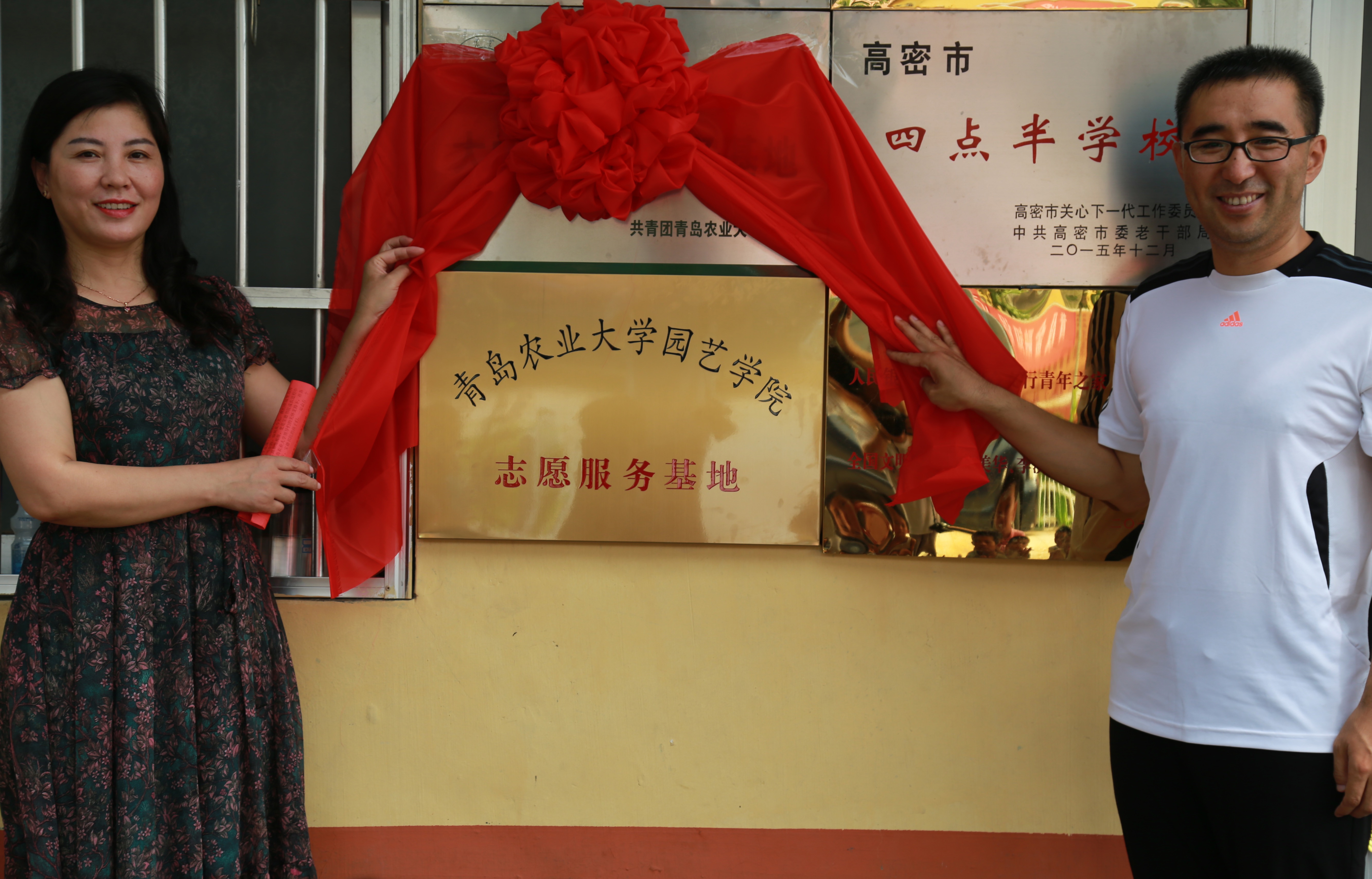 beat365唯一官方网站党委副书记王春晓、高密市妇联李主席共同为beat365唯一官方网站志愿服务基地揭牌。