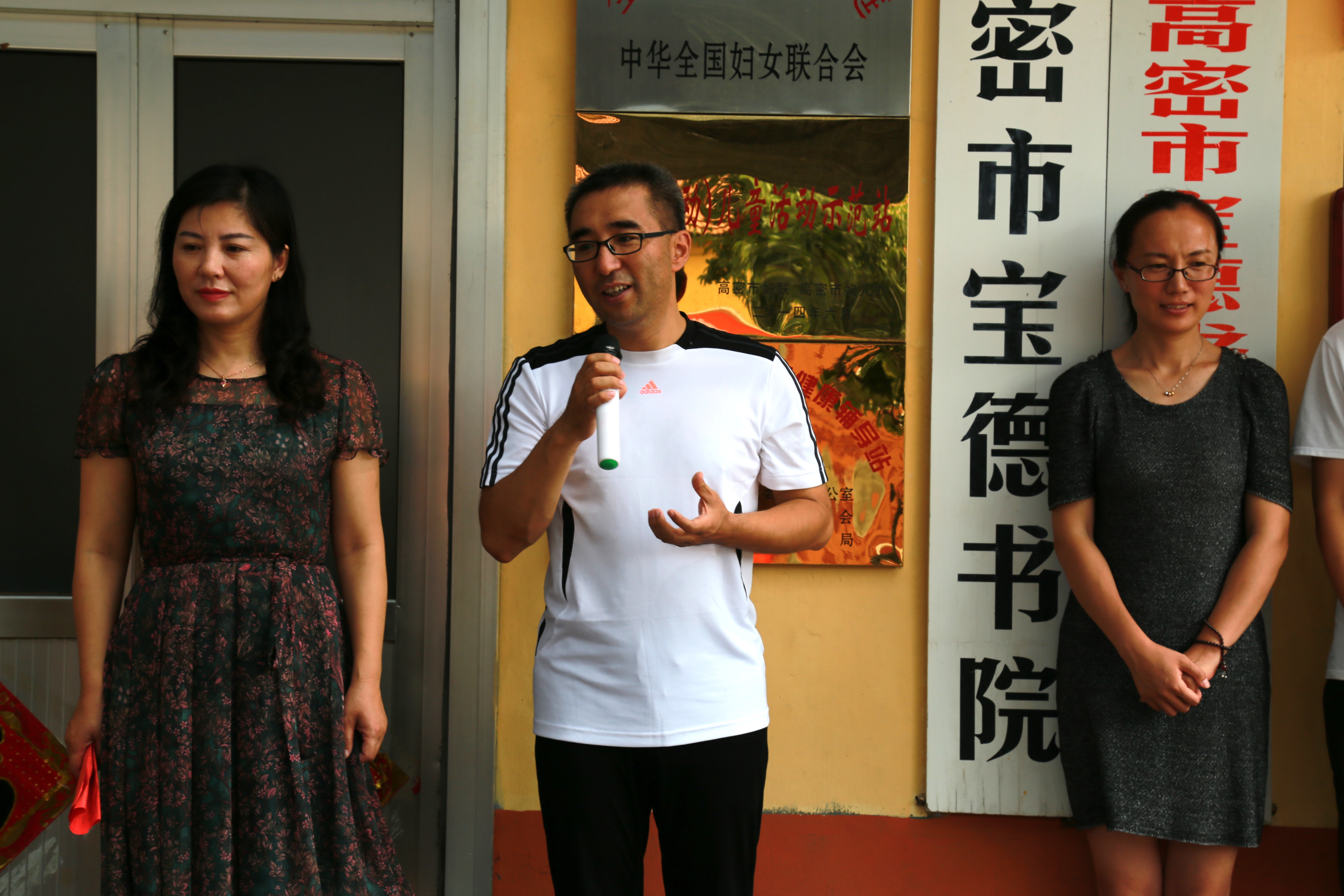 7月17日上午,beat365唯一官方网站与高密市宝德书院举行社会实践基地揭牌仪式。出席此次仪式的嘉宾有高密市妇联主席刘玉梅、副主席宋扬,beat365唯一官方网站党委副书记王春晓、分团委书记刘燕杰,学生会主席姜勇、副主席李世路、蒲公英公益服务团团长张志超,手拉手义务支教队潍坊分队长桑海洋、副队长刘浩也等学生代表也参与此次揭牌仪式。