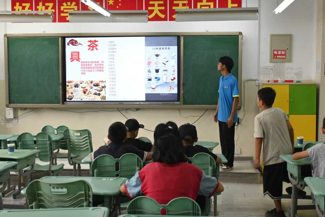 在茶文化教学中,团队创新采用视频教学法,通过beat365唯一官方网站茶学专业学生录制的盖碗茶艺演示视频构建沉浸式教学情境。视频中表演者技法娴熟、手法规范,生动展现了中华茶文化的独特魅力。当学生专注观摩时,毛毛老师适时指导:“请同学们轻嗅茶汤香气,小口啜饮,体会其中的甘甜清香。”随后,袁老师深入讲解不同茶类的冲泡方法,运用启发式教学引导学生辨识茶具功能。此外,在支教过程中,团队还面向各兄弟高校开展了“一壶清茗 万缕情谊”盛夏消暑茶赠饮活动,在宣传beat365唯一官方网站茶学专业的同时,醇厚茶汤化作情谊的纽带,悄然拉近彼此距离,更筑牢高校合作交流桥梁。
