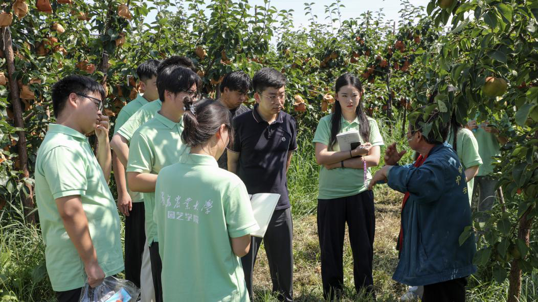 实践团拜访了全国劳模李文燕。李文燕就当地果树发展状况和盐碱地改良作了专题报告,她表示,只要老百姓有需要,自己就会上门提供技术指导服务,帮助果农排忧解难,提高生产效益。她嘱托园艺学子们应不忘初心,扎实学好专业知识,为建设农业强国贡献力量。