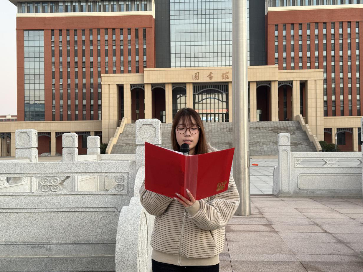 平度校区学生代表张靖涵以《以青春之我,筑强国之梦》为题作国旗下讲话。激励同学们要明白青春的意义,脚踏实地,以园艺前辈们为榜样,把专业所学化为报国之行。