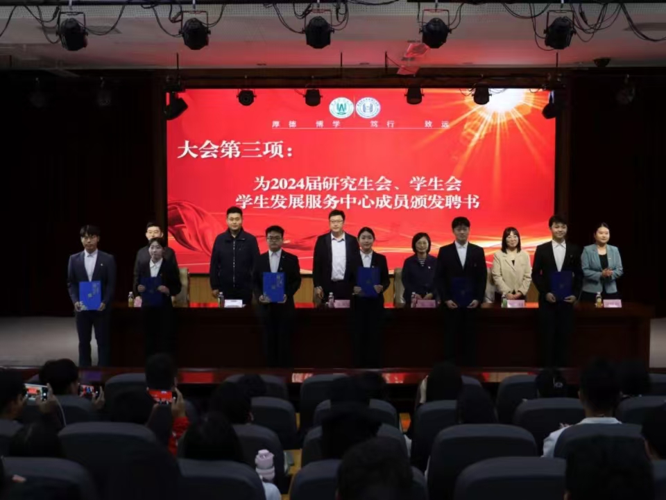 大会在庄严的国歌声中拉开帷幕,会议首先宣读了2024届研究生会、学生会、学生发展服务中心成员名单,并向2024届研究生会、学生会、学生发展服务中心学生干部颁发聘书。