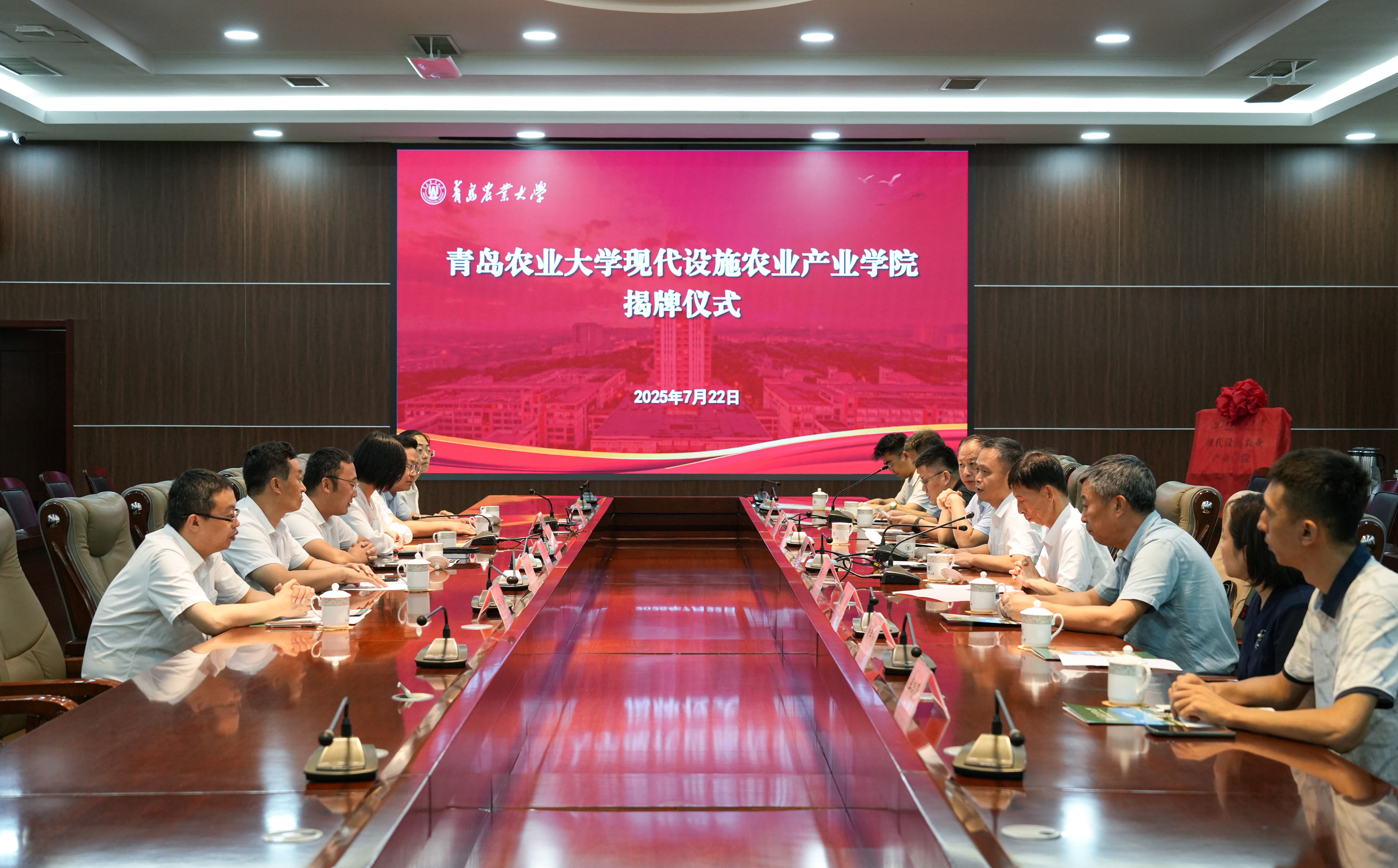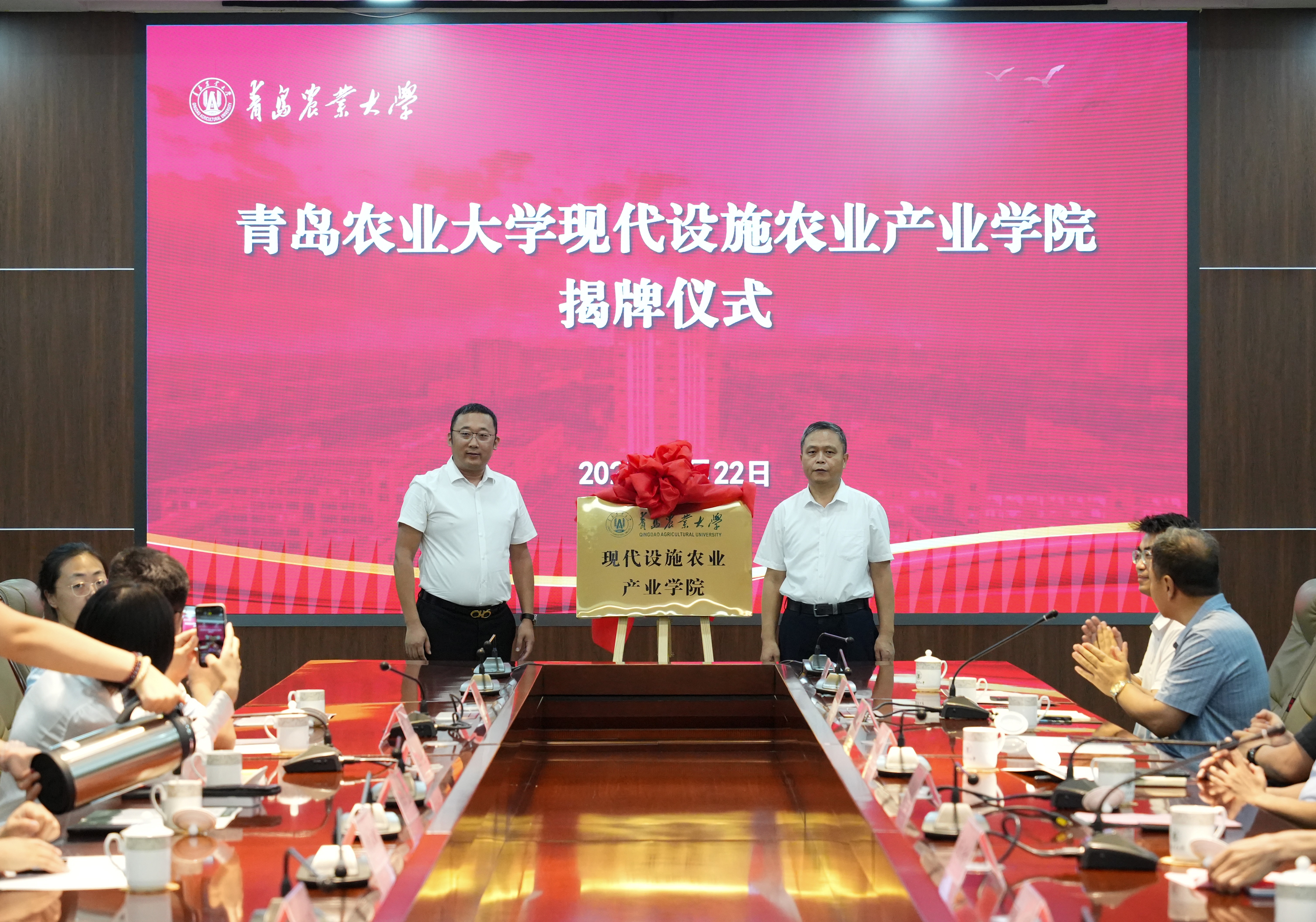 7月22日,beat365唯一官方网站现代设施农业产业学院揭牌仪式在学术会馆会议室举行。副校长郭尚敬出席仪式并致辞,教务处副处长贾永超、beat365唯一官方网站党政班子成员及教师代表、山东华亮重工机械有限公司、潍坊华辉铝业科技有限公司、山东菜多多肥业有限公司等合作企业代表出席。