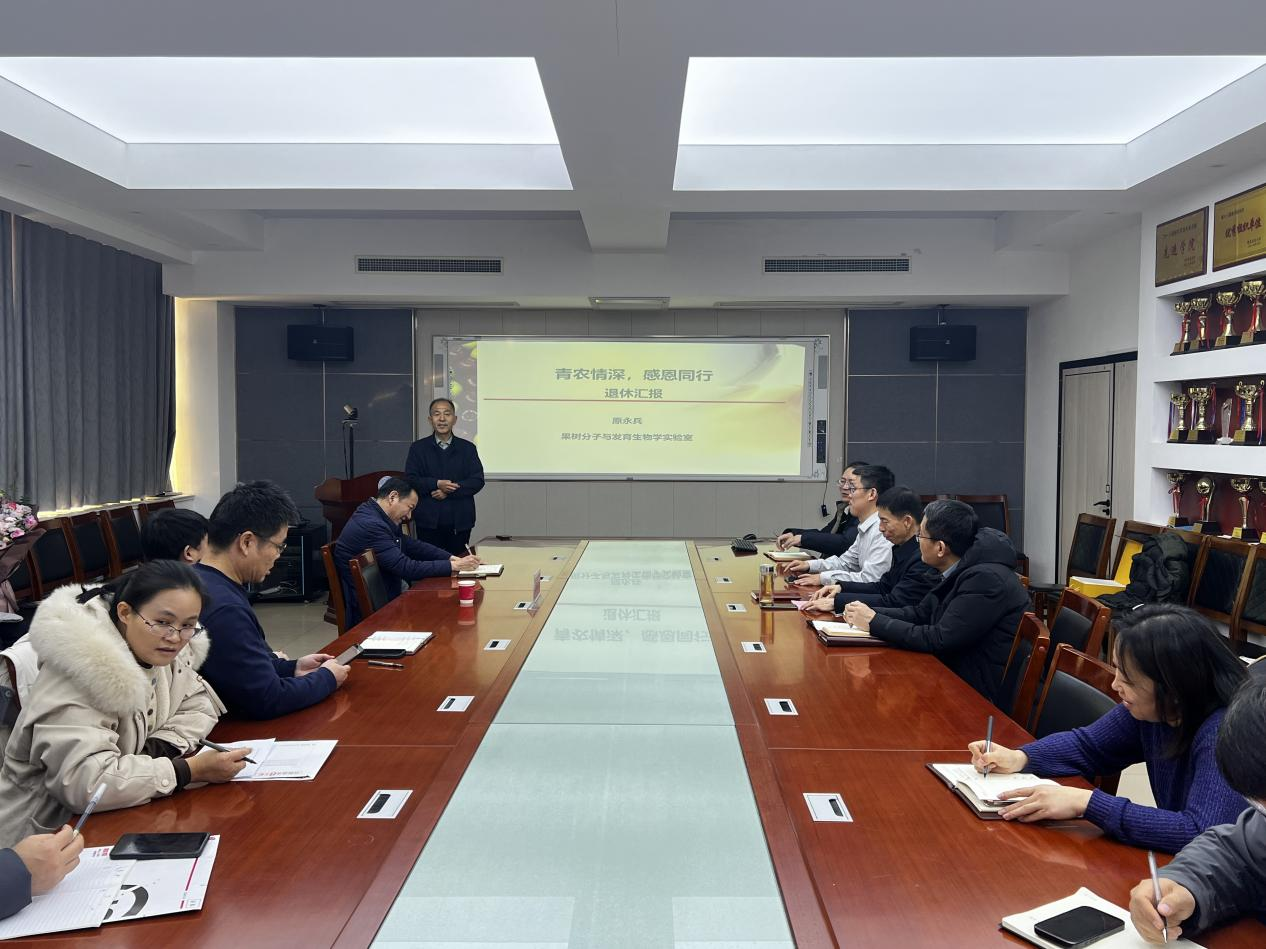 会上,原永兵教授回顾了在学校学习、工作和生活的难忘岁月,分享了自己投身教育事业的初心故事与执教生涯的深刻感悟,并勉励学院全体教工:做人要做正直善良的人;做事要认真严谨、一丝不苟;做学问要以国际视野,站在学科前沿,解决产业问题,引领产业发展,注重学科交叉,培养学生开拓创新和自我发展的能力和潜力,潜心治学、不为名利。院长张忠华对原永兵教授为学院发展所付出的辛勤劳动和贡献表示感谢,深情回顾了原永兵教授为学院建设发展和人才培养事业所作出的奠基性、开拓性贡献,并表示原永兵教授是学院事业发展的宝贵财富,他希望原永兵教授能够一如既往地关心、支持学院发展,将丰富的育人经验与多年从教心得悉心相传,照亮青年教师前程,助力学院擘画未来。与会教师纷纷发言交流,分享了与原永兵教授相处共事的温暖点滴与感人故事。大家纷纷表示,将继续传承发扬老教师的优良教风和奉献精神,坚守立德树人初心,扛牢强农兴农使命,切实弘扬教育家精神,为学校高质量发展做出应有贡献。
