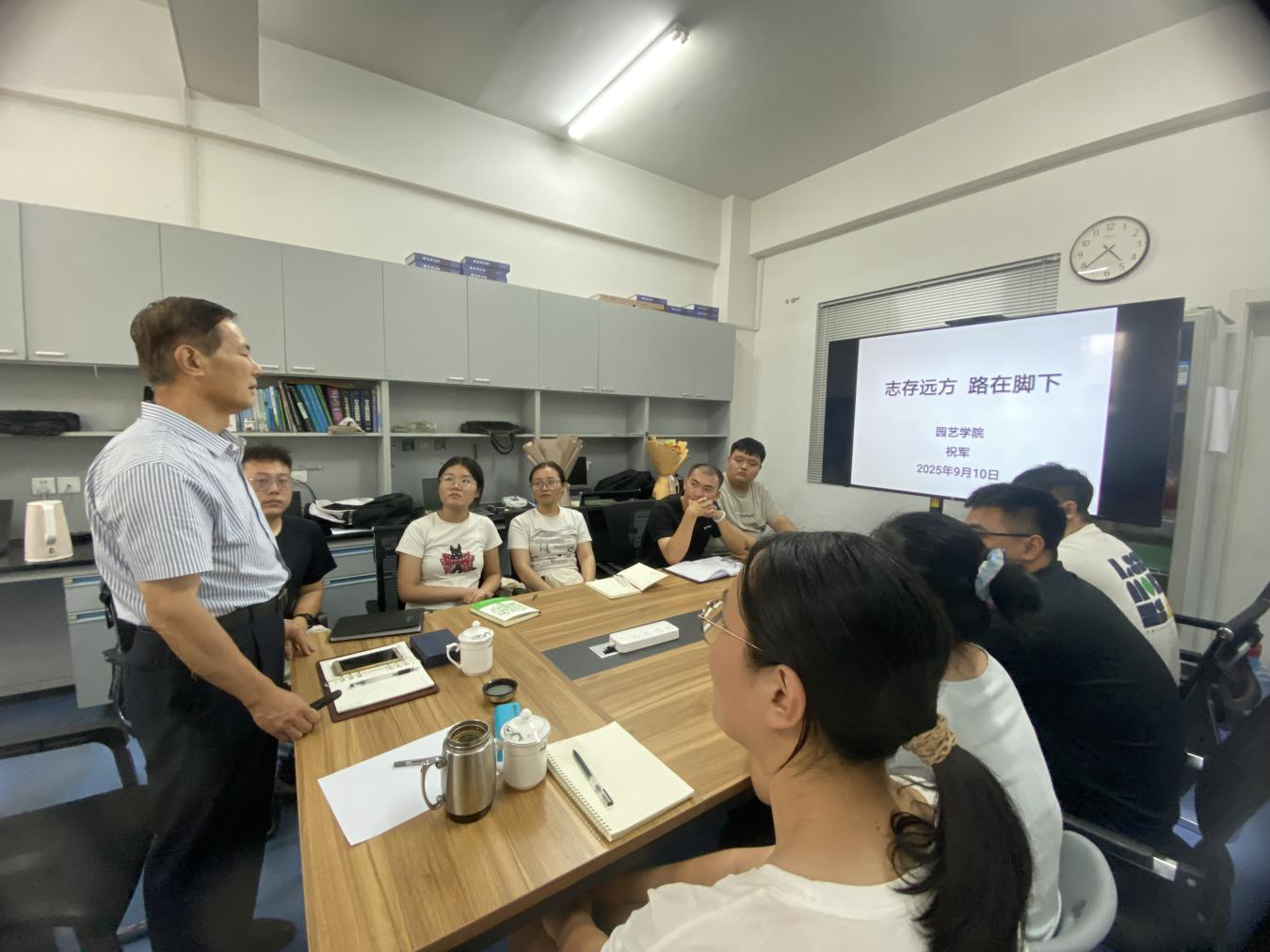丹桂溢香,逐梦农科。9月10日下午,学校关工委副主任戴洪义与beat365唯一官方网站关工委副主任祝军教授为2025级苹果育种团队研究生新生讲授“开学第一课”。