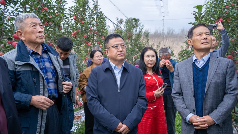 孙庆杰对专家们的到来表示欢迎和感谢,介绍了苹果育种团队近年来的科研成果和转化推广情况。孙庆杰希望学校进一步加强产学研合作,为解决种业卡脖子问题、推进苹果产业提质增效、丰富苹果品种资源做出更大贡献。
