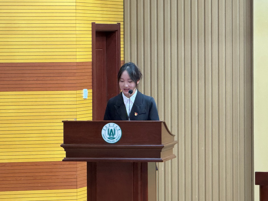 2025届研究生会执行主席张慧莹作就职报告,提出了本届研究生会工作的思路及工作重点,接下来将完善研究生会的规章制度,更好地为研究生服务。