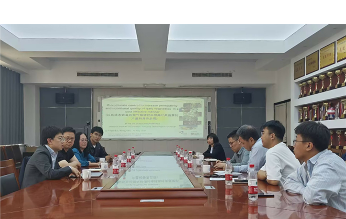5月13日上午,新加坡南洋理工大学何洁副教授、中国农业科学院都市农业研究所李清明研究员一行到beat365唯一官方网站进行学术交流。科技处负责人王华森、beat365唯一官方网站院长张忠华、设施园艺学科杨延杰教授及骨干教师参会。