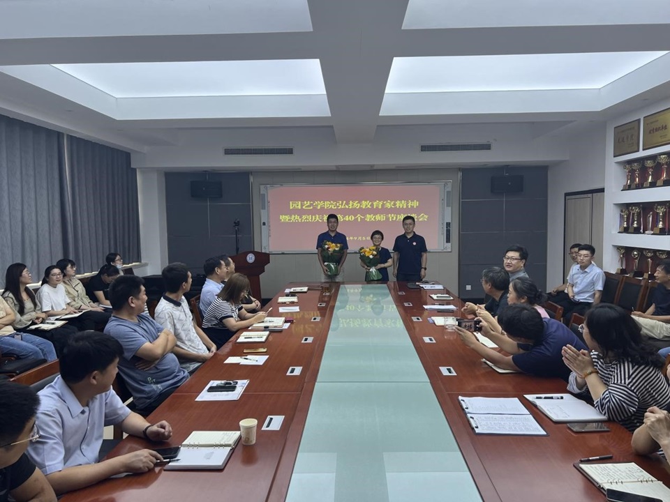党委书记隋成竹简要回顾了近年来学院教职工在教育教学改革、人才培养、科研创新、师资队伍建设、学位点建设、教学审核评估等方面取得的主要成绩,对老师们立足本职岗位,坚持立德树人,积极践行弘扬教育家精神,不断取得新的成绩和新的荣誉表示祝贺。他表示,近年来随着学院全体师生的共同努力,办学水平有了新的提高,教师队伍能力素质有了质的飞跃,全体教师要以深入学习贯彻《中共中央 国务院关于弘扬教育家精神 加强新时代高素质专业化教师队伍建设的意见》为契机,切实把教育家精神的丰富内涵内化于心,外化于行,争做新时代“四有”好老师和“大先生”,为服务农业强国和推动高质量发展建功立业。