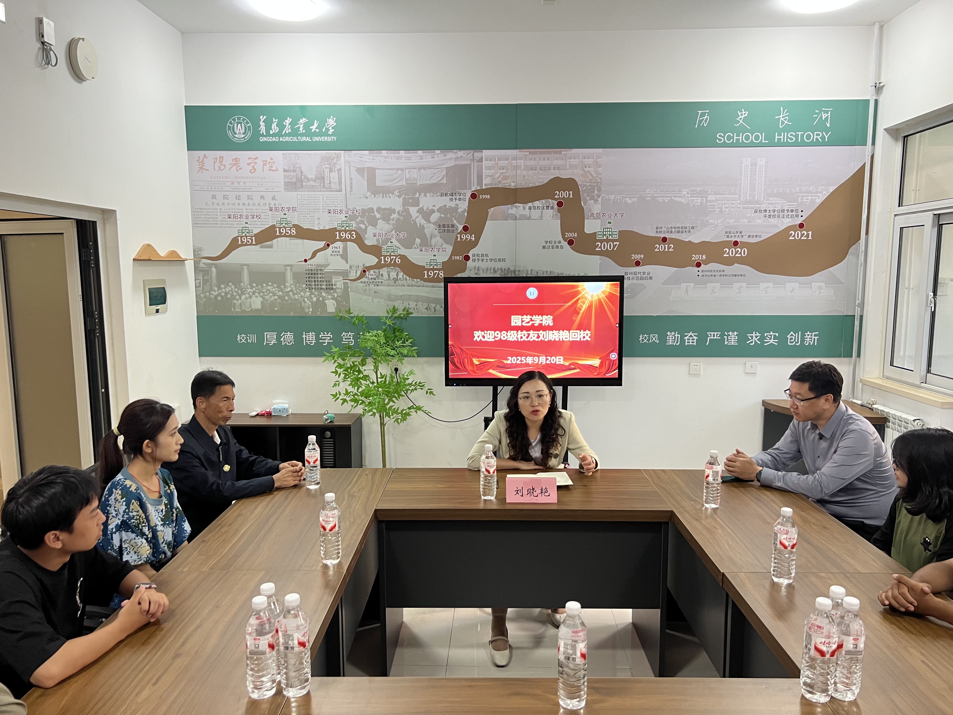 9月20日下午,beat365唯一官方网站98级校友、湖北省生物农药工程研究中心暨国家生物农药工程技术研究中心副主任刘晓艳在平度校区一站式社区与2025级新生开展座谈交流。beat365唯一官方网站党委书记隋成竹,学工办辅导员及部分2025级新生代表参加座谈,会议由学院党委副书记、副院长孙海涛主持。