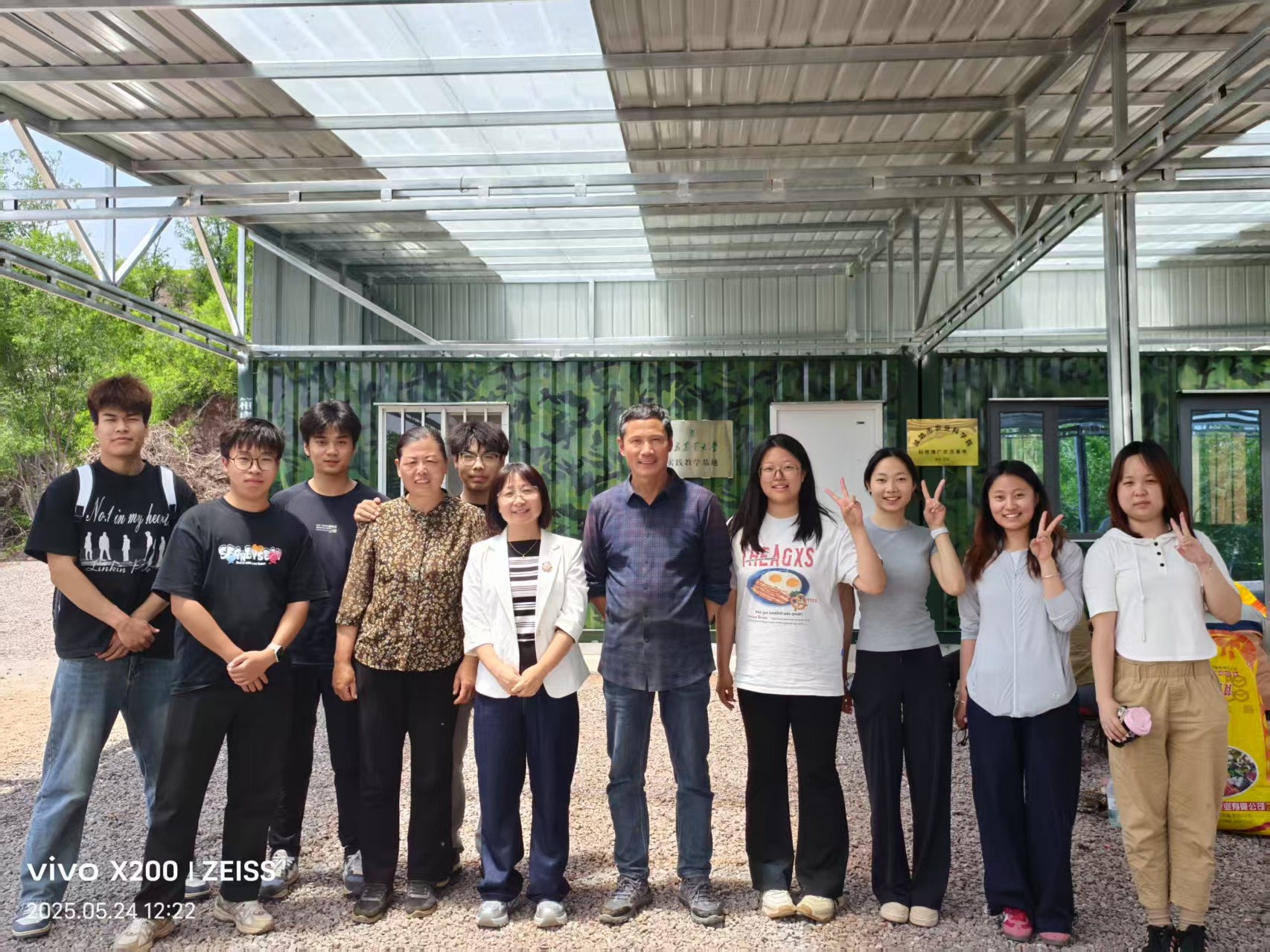 图为小组成员与带队老师和基地负责人合影