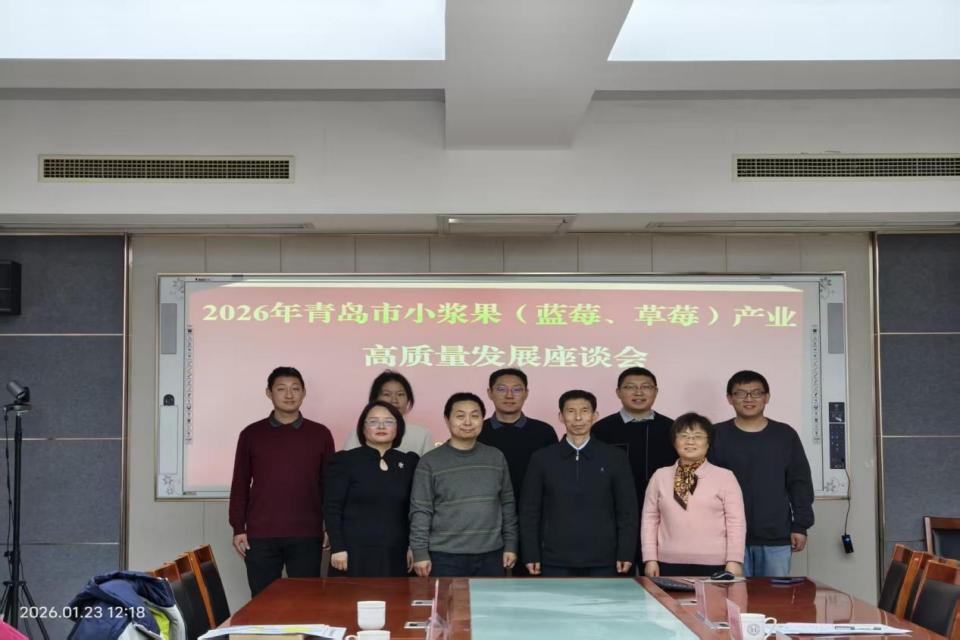 为推进青岛特色农产品产业升级和促进产学研用深度融合,科技赋能蓝莓、草莓为代表的小浆果产业高质量发展,1月23日上午,2026年青岛市小浆果(蓝莓、草莓)产业高质量发展座谈会在beat365唯一官方网站召开。会议由beat365唯一官方网站郑晓东教授主持,beat365唯一官方网站党委书记隋成竹致开幕词。青岛市农业技术推广中心经作部部长纪国才、副部长刘爱娜,山东省果品产业技术体系岗位专家王彩虹教授、李少旋副研究员及团队成员出席会议并作交流发言。