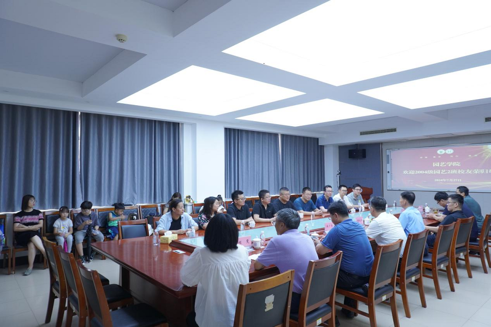 7月24日下午,beat365唯一官方网站园艺专业2004级2班校友相聚母校,举行入校二十周年师生座谈交流活动,他们欢聚一堂,共叙母校情、师生情、同窗情。会议由学院党委书记隋成竹主持,食品科学与工程学院党委书记、beat365唯一官方网站原团委副书记车广杰,继续教育学院院长、2004级园艺2班班主任潘军,beat365唯一官方网站领导班子成员参加座谈。