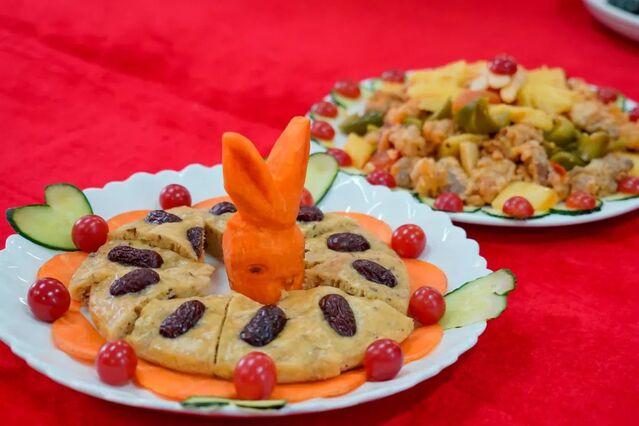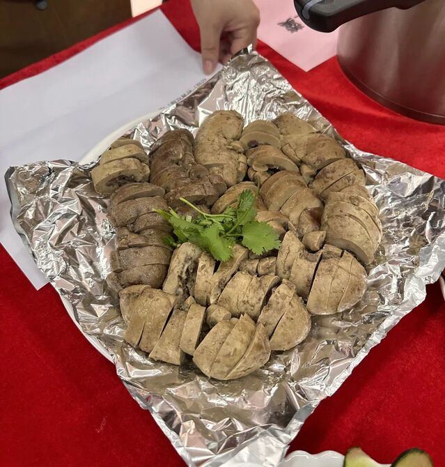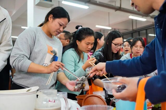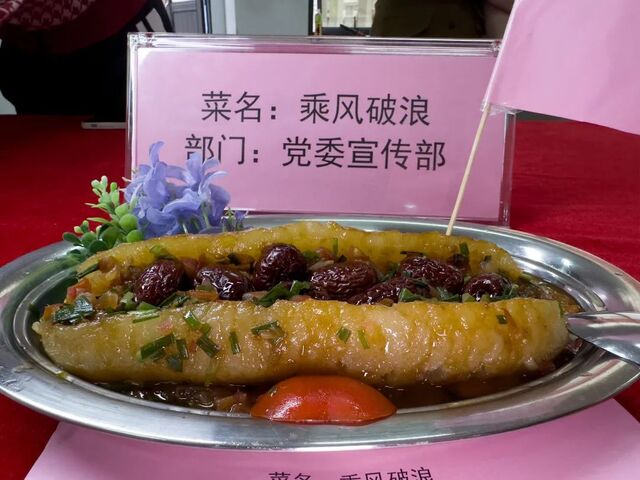 “这个菜好吃”,“真的好吃”;“多吃点,这个菜很补”;“乘风破浪,这菜名寓意深刻”;“这个菜这么快就被吃完了”;“真的是色香味俱全”......。一位位“美食家”不断点头,不停竖起大拇指,不时向旁人推荐美食。美味佳肴,欢声笑语,一派节日喜庆!