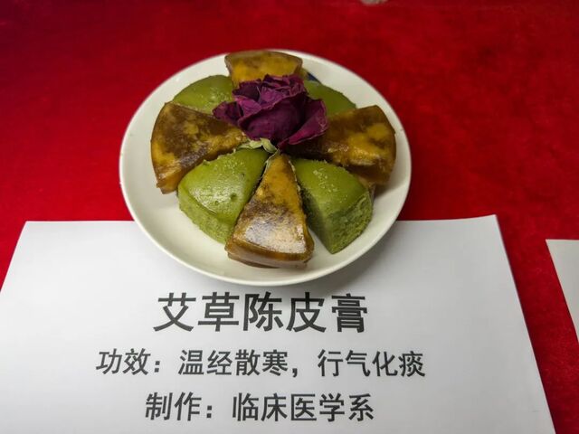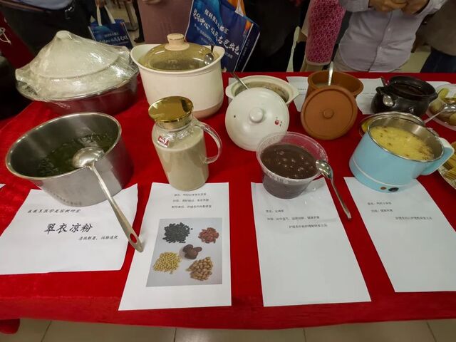 活动还有自制药膳展示环节。在自制药膳展区,由学院各机构、教学教辅机构(以教研室为单位参加)、群团组织、直属单位自行设计制作的41道药膳一字排开,精彩纷呈,食材的鲜美中混入了药物的香味,馥郁芬芳,香气扑鼻,令人眼界大开,食指大动。